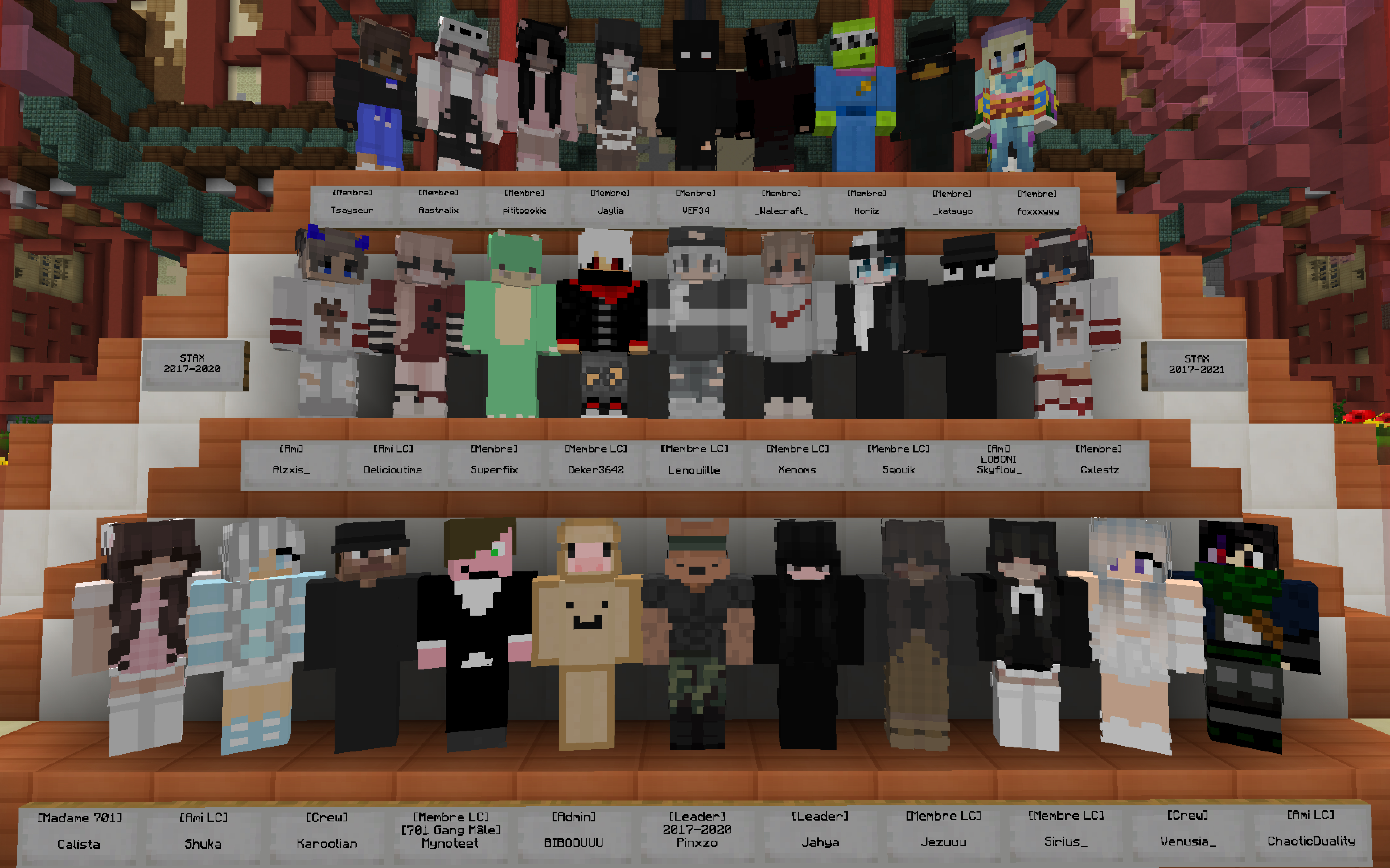 Ce dernier décida de fonder un autre groupe avec tous les membres exclus et ainsi, le 29 avril 2017, naquit la Stax ! (Youhouuuuu) UWU Jour après jour, année après année, la Stax a su se développer, des membres prirent parti à cette aventure et d’autres sont partis tels des gros fils de put** mais c’est pas grave mdr, dommage pour eux. Aujourd’hui, ce groupe d’amis est devenu une grande et belle famille, et compte 25 membres à son actif... et bientôt 26. (#Quelqu’un)